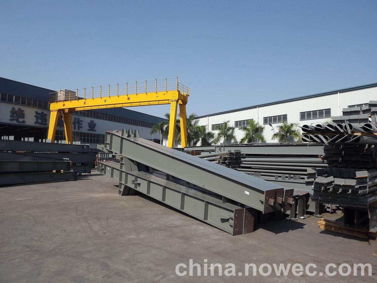 条状单元一般沿长跨方向分割,其宽度约为1~3个网格,其长度为l2或l2/2(l2为短跨跨距)。块状单元一般沿辽源网架平面纵横向分割成矩形或正方形单元。每个单元的重量以现有起重机能胜任为准。条(块)与条(块)之间可以直接拼装,也可空一网格在高空拼装。由于条(块)状单元是在地面拼装,因而高空作业量较高空散装法大为减少,拼装支架也减少很多,又能充分利用现有起重设备,故较经济。这种安装方法适用于分割后网架的钢度和受力状况改变较小的各类中小型网架,如两向正交正放四角锥、正放抽空四角锥等网架。